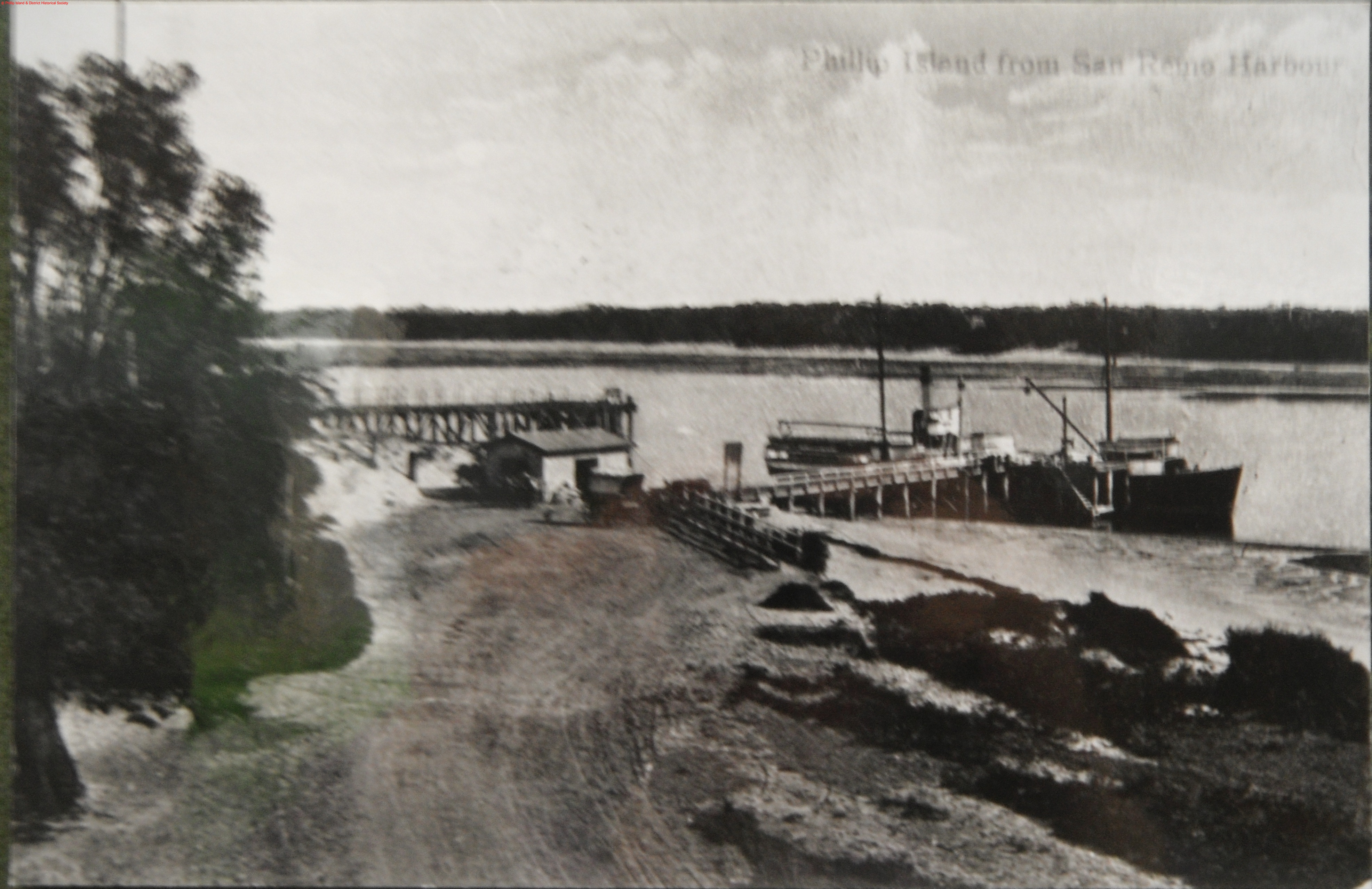 San Remo harbour. Coal Steamer at public jetty. Coal jetty at left.