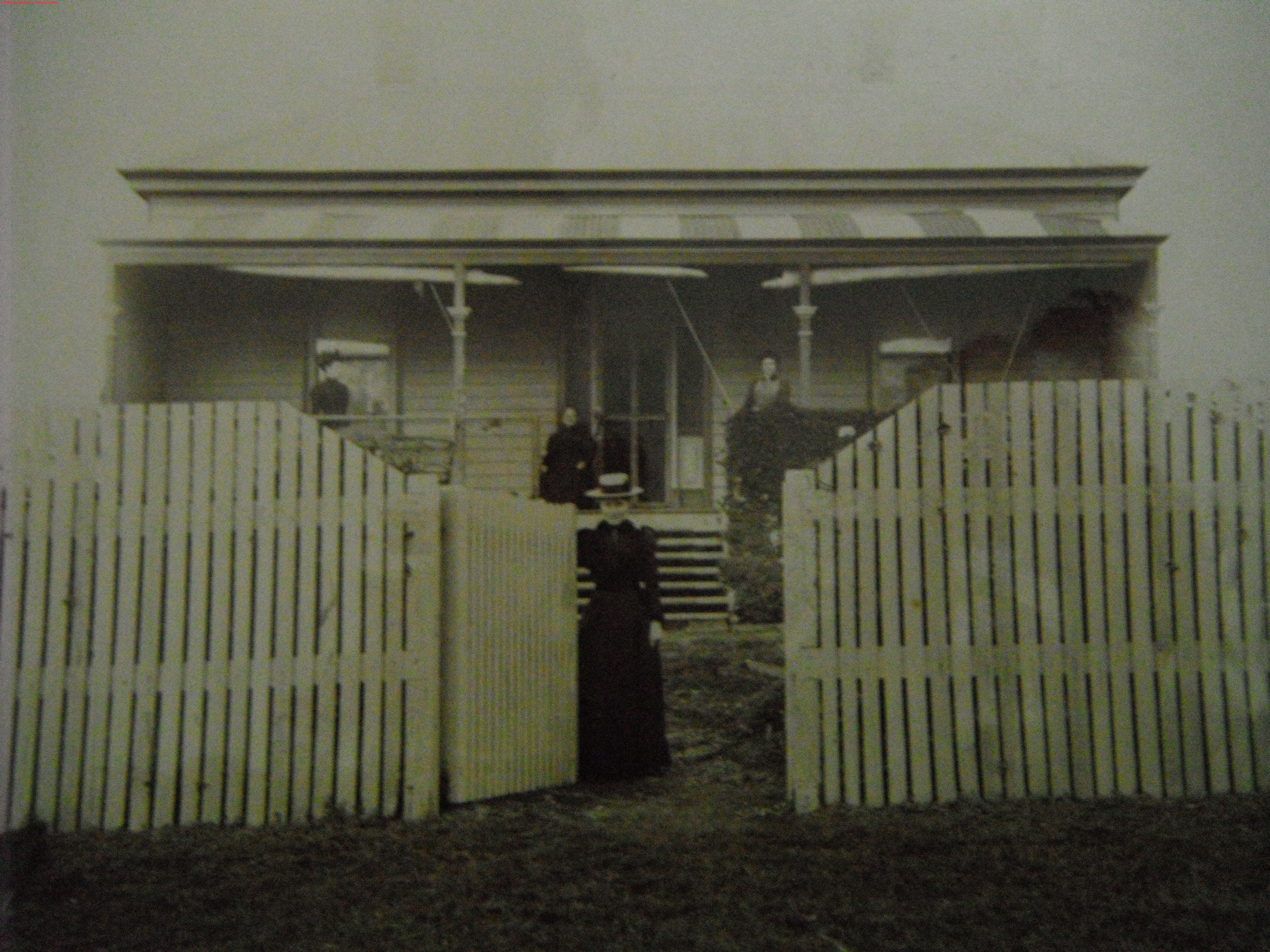 "Delamore" cnr Panorama Dve and Anderson St San Remo. Left - right: Miss Small, Mary Bonwick, Miss Smith, Miss Elsie Bonwick at gate.