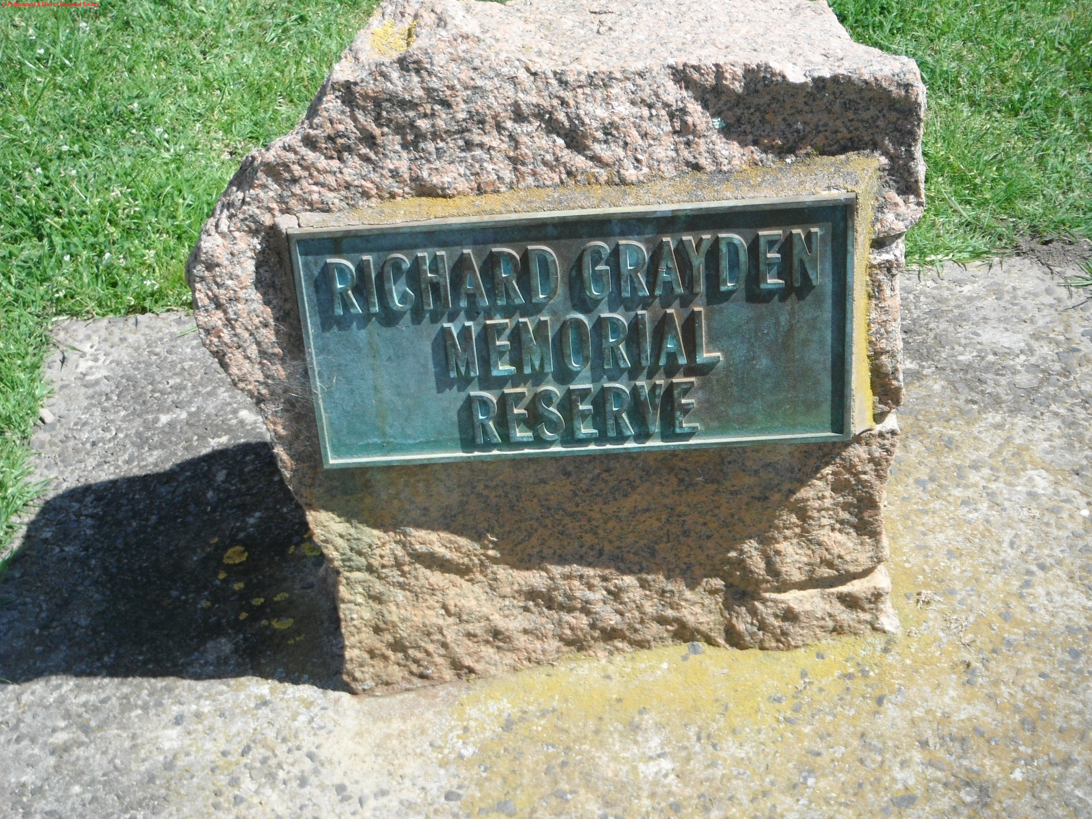 Richard Grayden memorial plaque at the reserve, Newhaven. Richard Grayden was the driving force behind the first Phillip Island bridge, opened 1939. Photo: Christine Grayden.